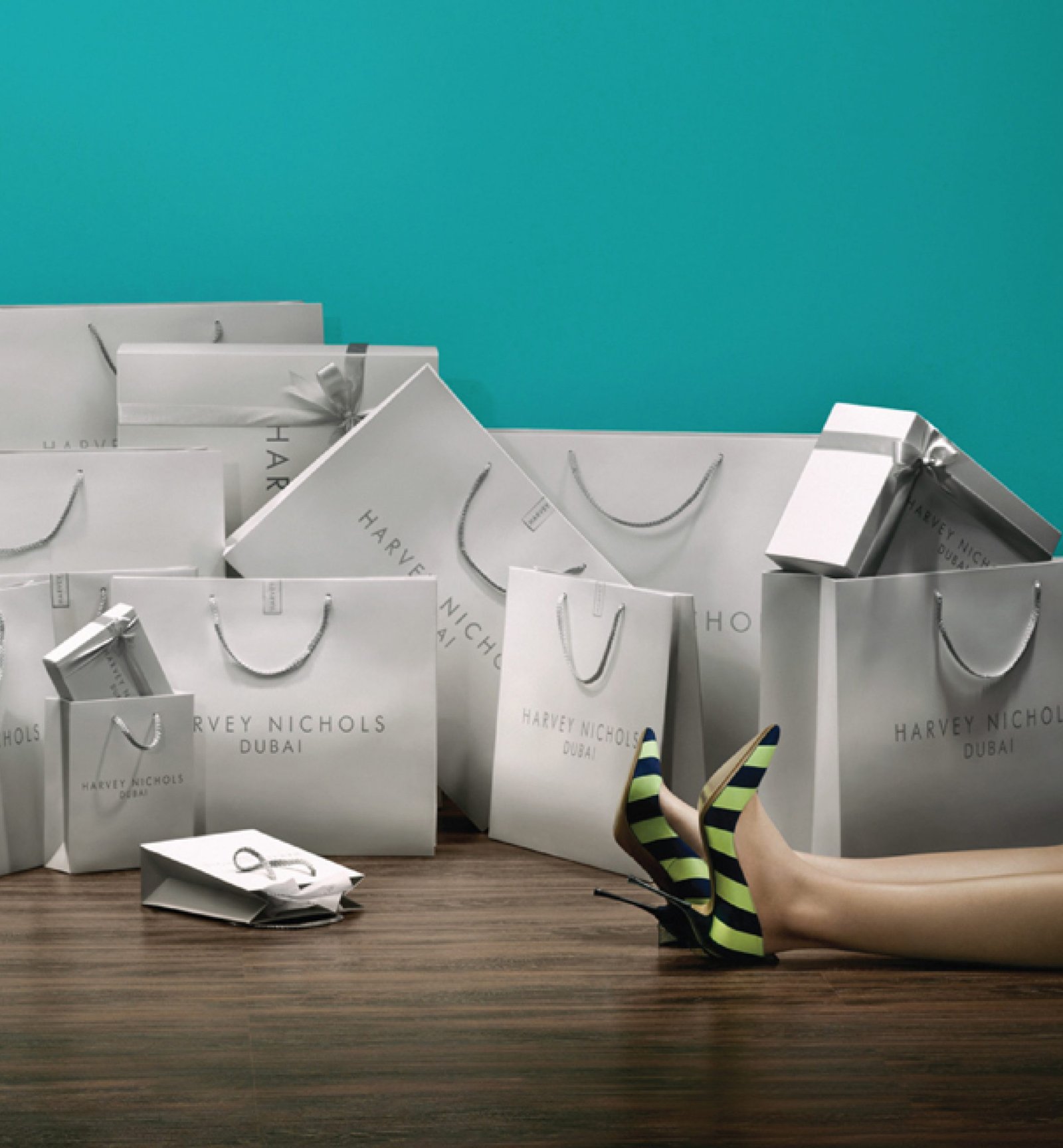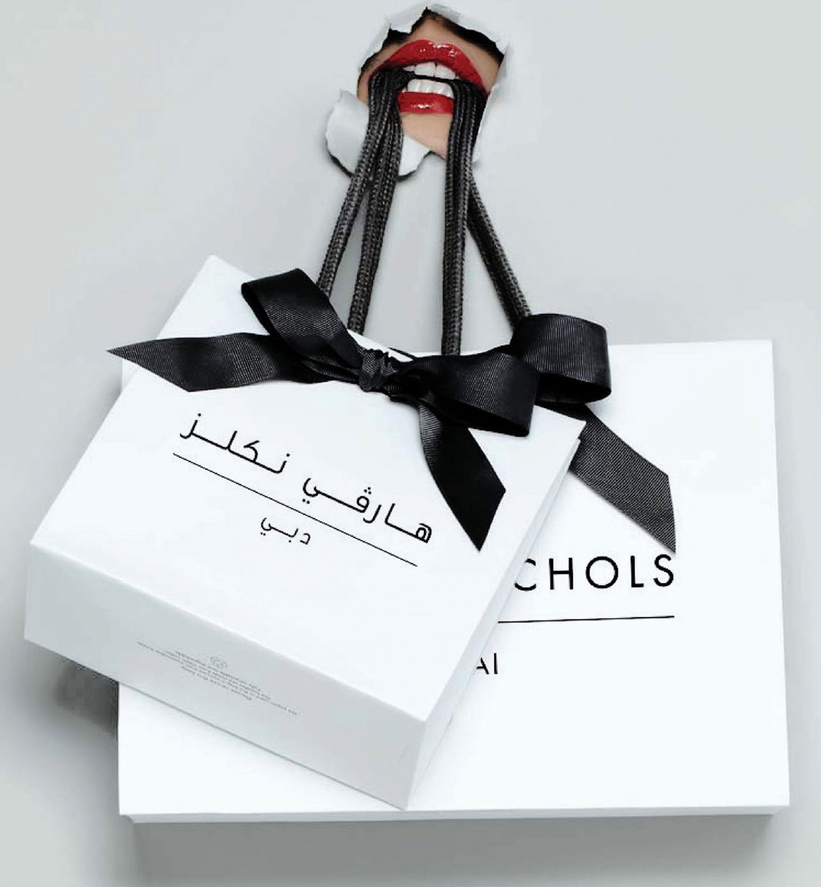 High-end luxury identity and iconic promotional packaging design to celebrate the decennial anniversary of Harvey Nichols and assert its presence in the Middle East.
